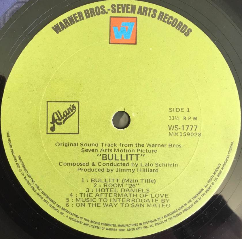 Again, it’s difficult being too specific about when the changes occurred, but in this case the © date on the rear sleeve for Lalo Schifrin’s Bullit soundtrack (WS 1777) says 1969 and my copy has a radio station stamp showing May 1969 so it had certainly happened by then.