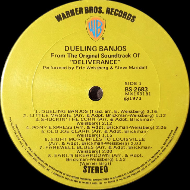 Eric Weissberg & Steve Mandell’s soundtrack for the film Deliverance would have been one of the final releases using the green WB label in 1973. It was being reviewed as a new release in Australian newspapers in June 1973.