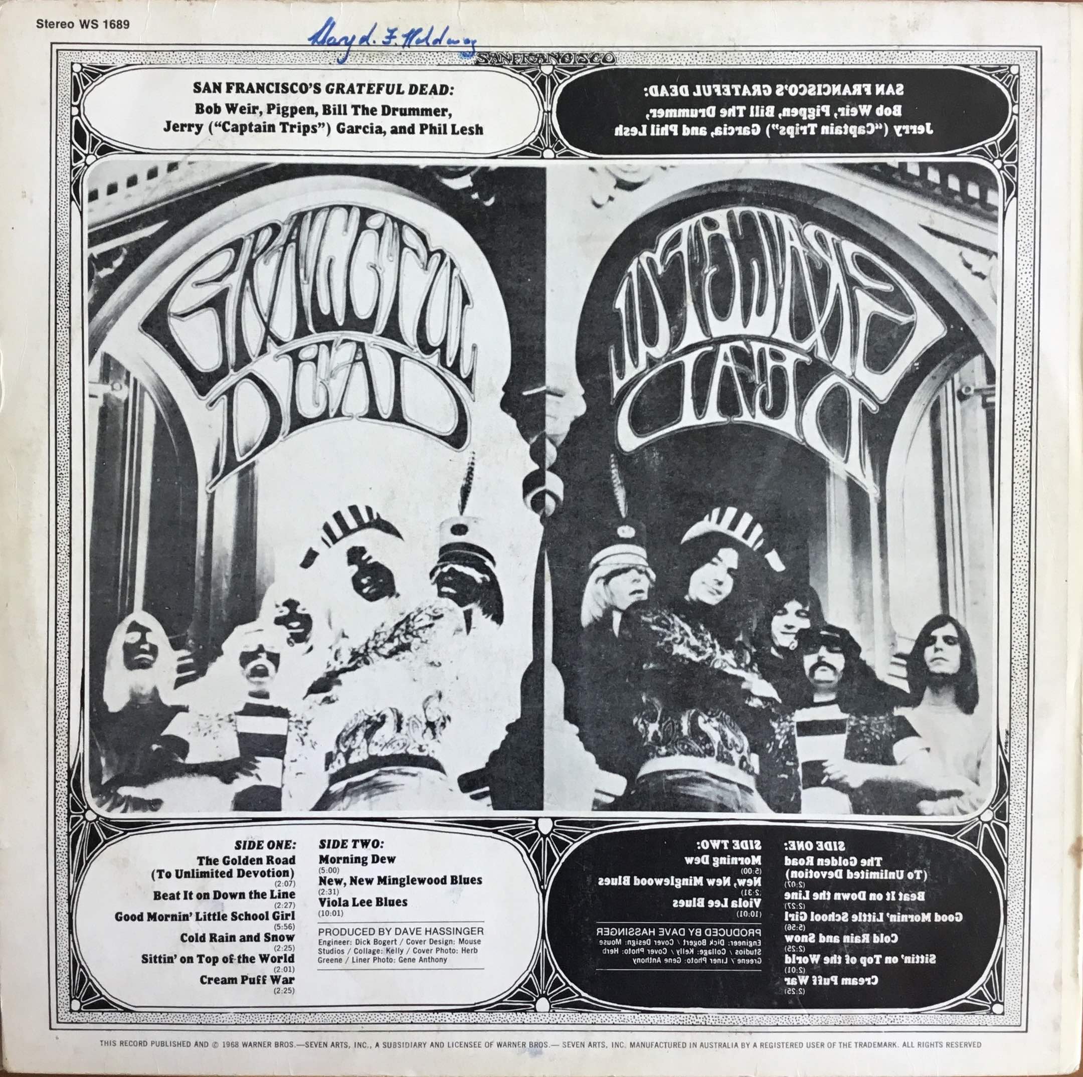 The Grateful Dead’s self titled debut album was being reviewed in Australia in March/April 1968. The text at the bottom of the rear sleeve is the earliest reference I can find of an Australian pressing that credits Seven Arts. It reads “This record published and © 1968 Warner Bros. – Seven Arts, Inc., A subsidiary and licensee of Warner Bros. – Seven Arts Inc.”