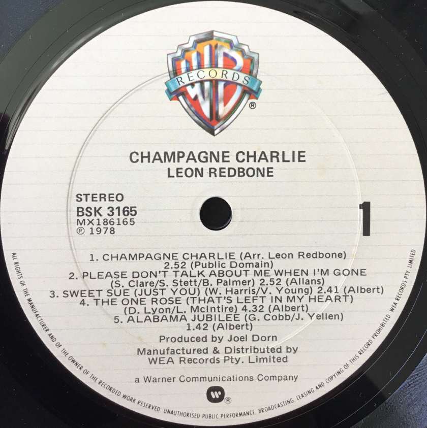 The final variation considered in this blog is the cream or white label which began being used in 1978. An example is the the Champagne Charlie album from Leon Redbone (BSK-3165). This continued into the 1980s.
