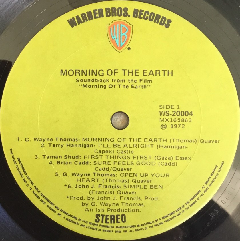 Featuring G. Wayne Thomas, John J. Francis, Brian Cadd, and Tamam Shud, the Morning of the Earth was an early local success for the label becoming the first Australian film soundtrack to achieve gold sales status.