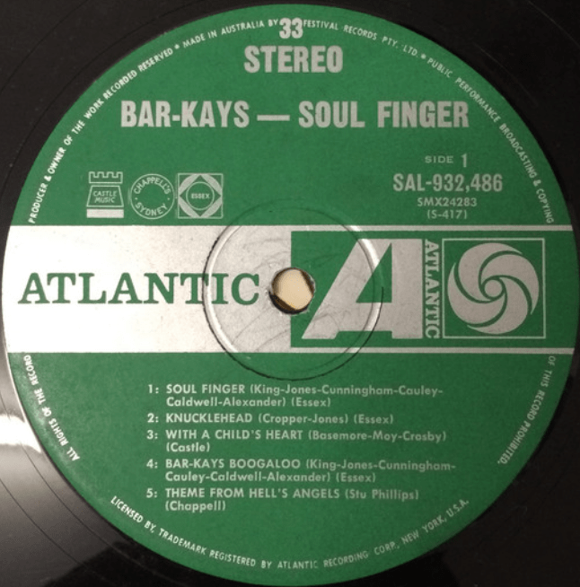 First Australian Pressing (mid 1969): Dark green and silver Atlantic Label, catalogue number of SAL 933,232, mono number AL 933,232 also printed in top right corner of rear sleeve, Jewel publishing stamp above big Atlantic, flipback Festival sleeve, small Atlantic below catalogue number on label runs top to bottom.