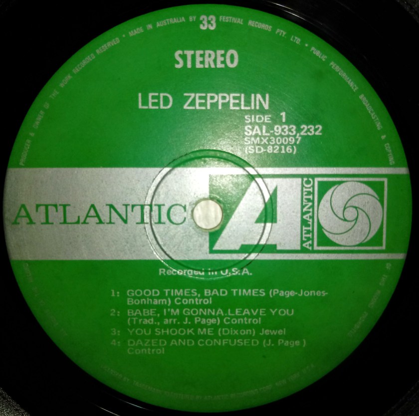 In Australia the first Led Zeppelin album has been a popular seller since it was released. As a result there are many different versions that turn up. For collectors it can be difficult to work out whether the copy you have found is an original first pressing or one of those that followed as the audience for the record grew from thousands into millions.